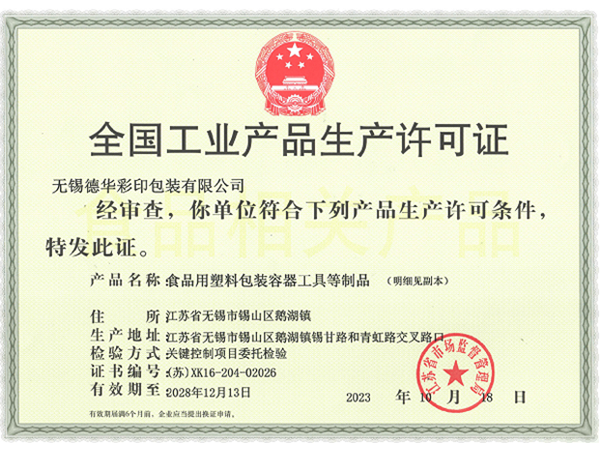 食品用塑料包装许可证
