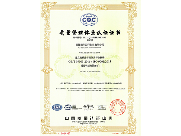 质量管理体系认证证书